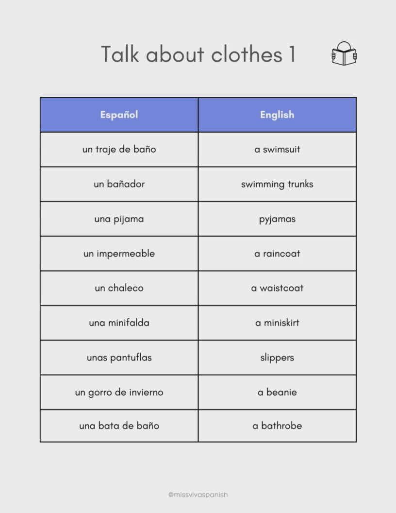 - Builds confidence in speaking and writing about clothing in Spanish