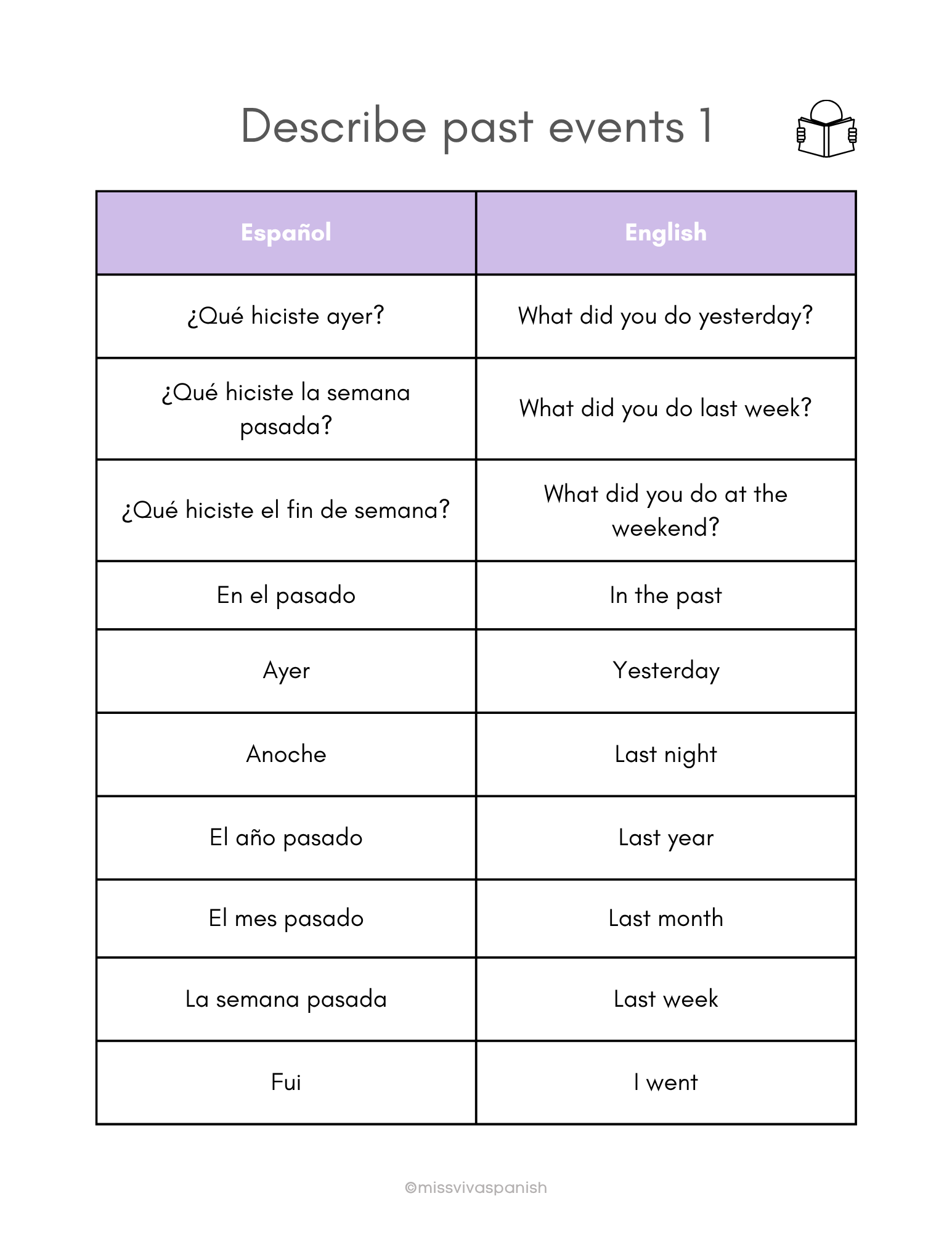 Download your Spanish Description of Past Events Worksheets today and start describing your past like a native Spanish speaker!