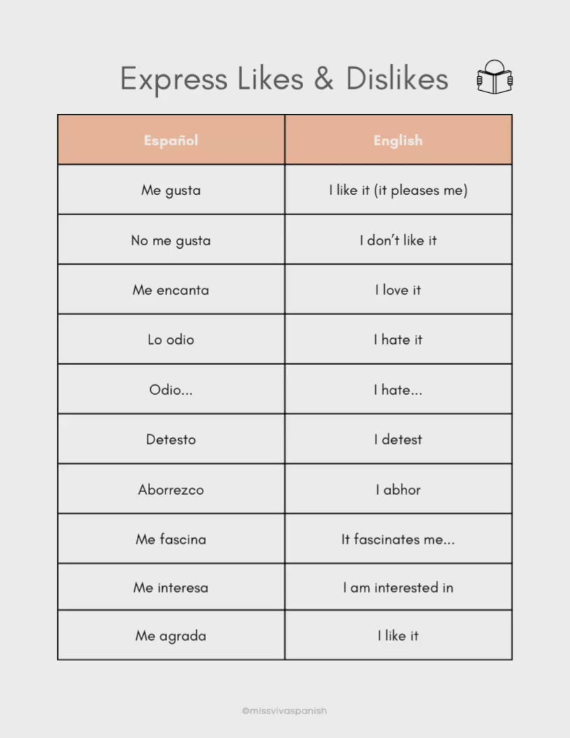 💬 From “Me gusta la música” to “No me interesa el fútbol,” students will learn to express themselves naturally and accurately in Spanish.