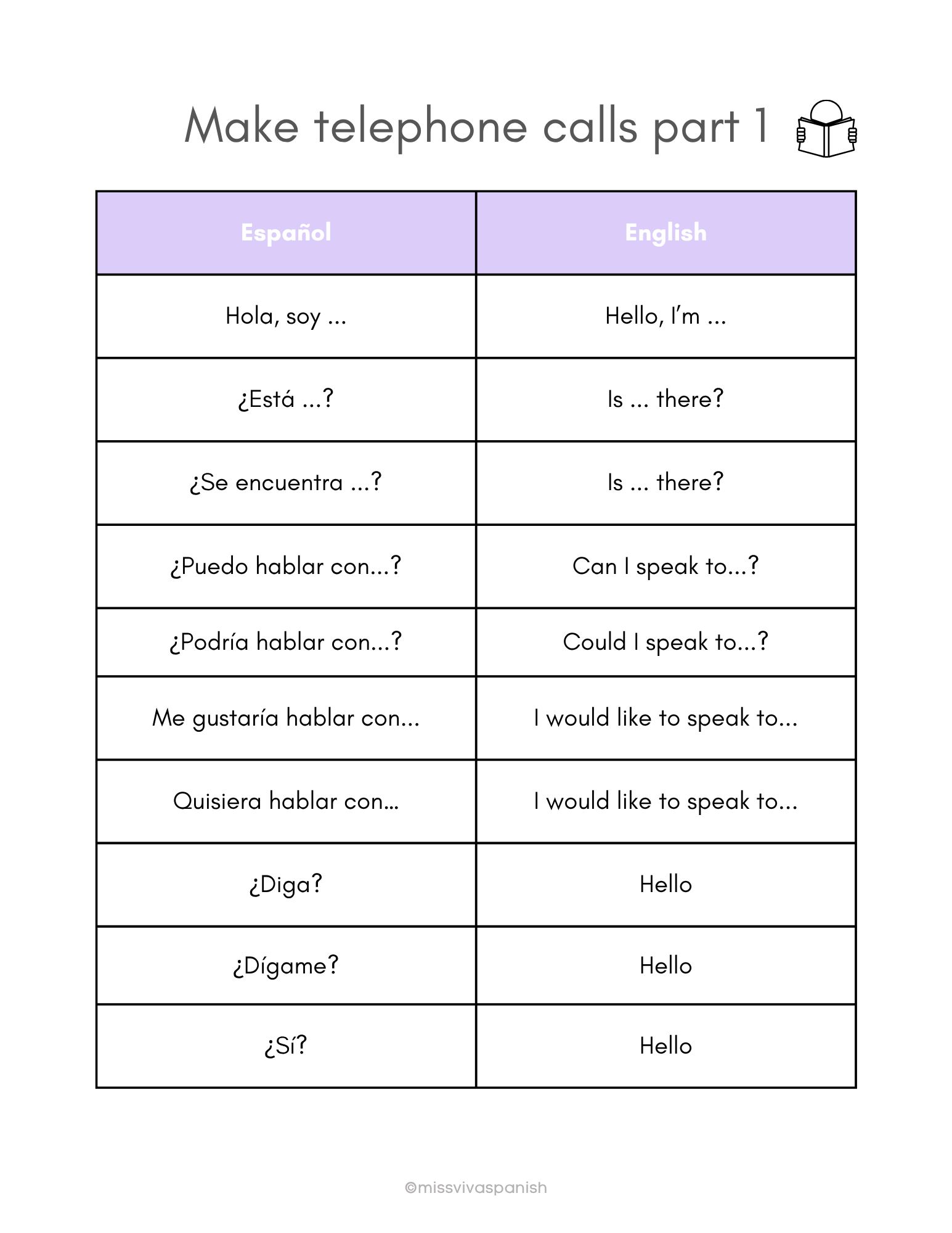 Download your Spanish Making Telephone Calls Worksheets today and start speaking confidently in any phone conversation!