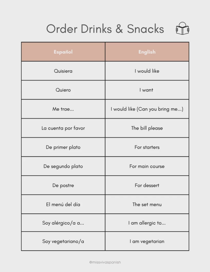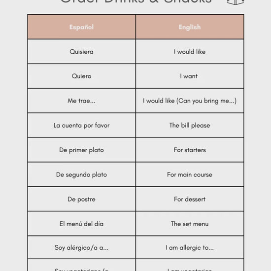 💬 Learn how to say “Quisiera una mesa para dos,” “¿Cuál es la especialidad del día?” or “La cuenta, por favor” with ease and accuracy!