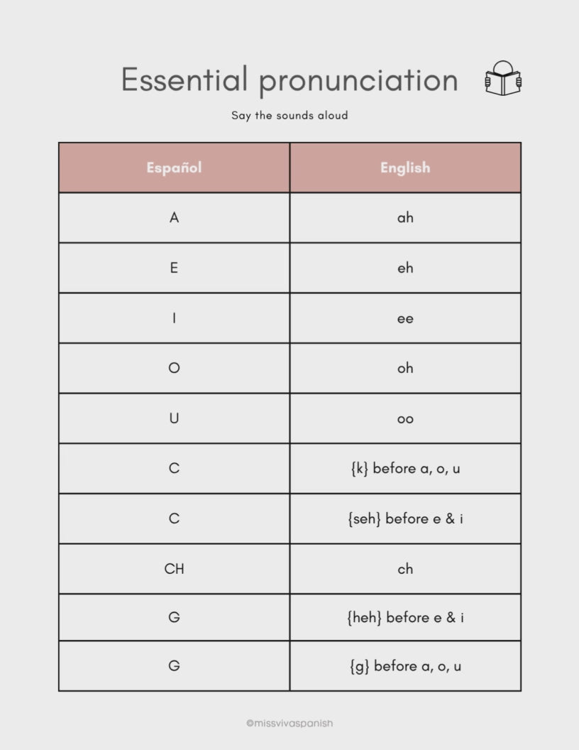 ✅ Step-by-step pronunciation guides for Spanish vowels, consonants, and tricky letter combinations.