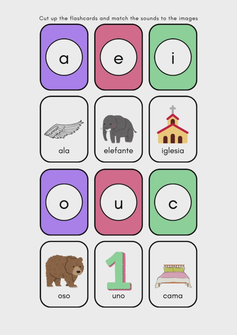 Spanish pronunciation flash cards & worksheets (8+)(SM)